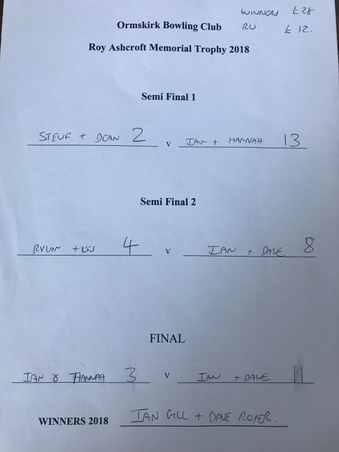 ← Roy Ashcroft Memorial Trophy 2018